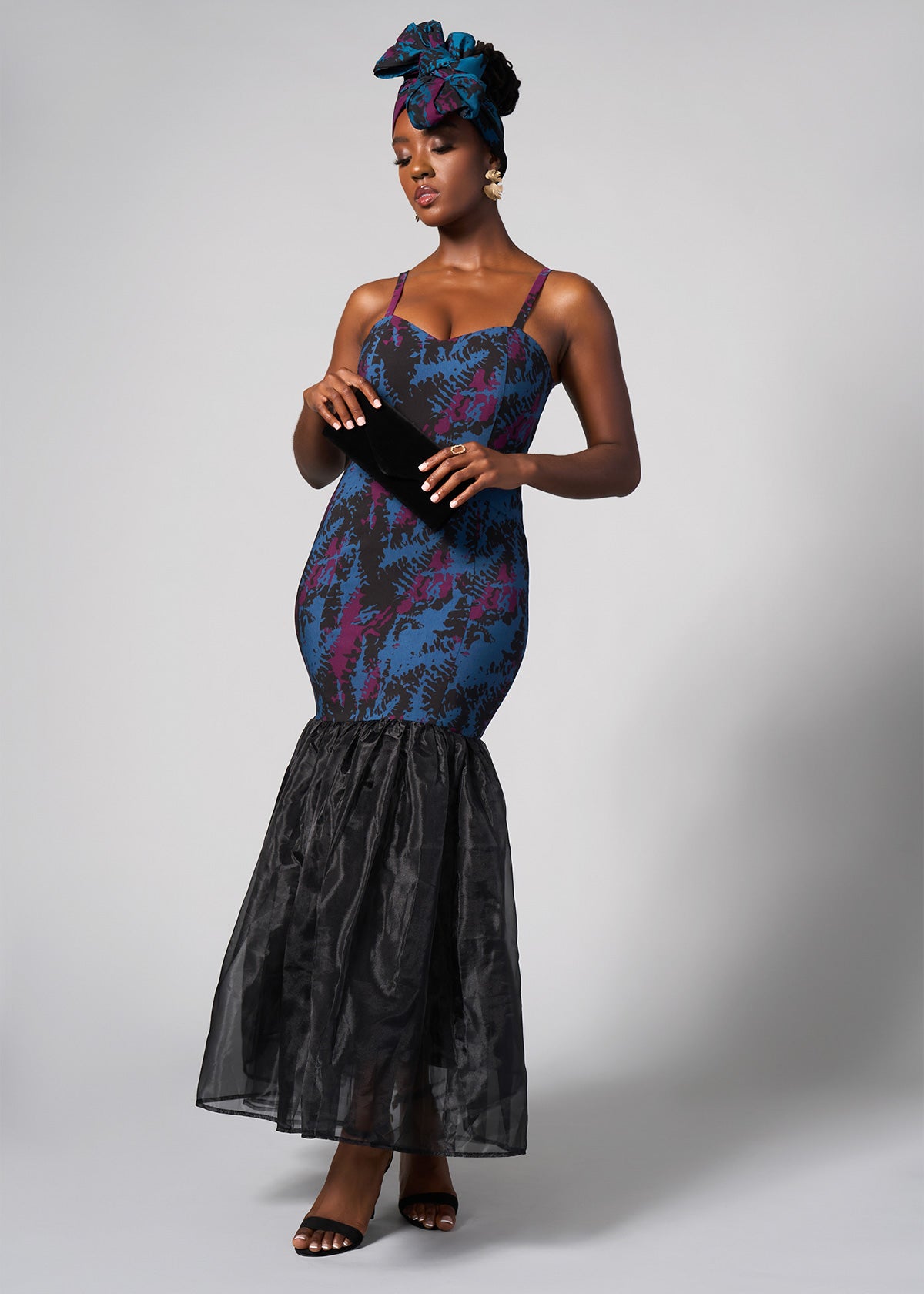 Own the night with the demure elegance of the Hassia maxi gown in the moody Midnight Teal Abstract print. This gorgeous form-fitting sweetheart neckline dress is giving queen energy that will surely steal the show. And if you want to share the spotlight, shop our matching looks for the whole family.