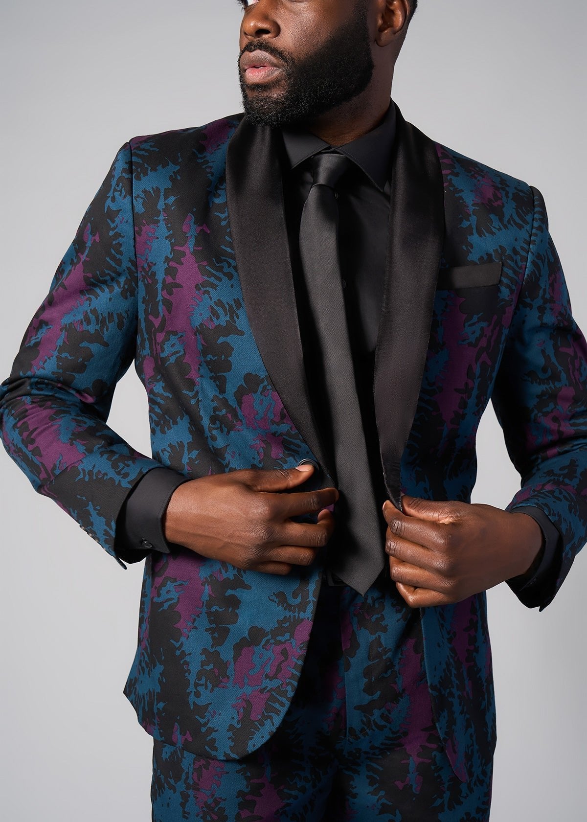 Bring the elegance and mood with the fully lined Aadan Blazer in the Midnight Teal Abstract print. Dress down with a T-shirt and jeans or dress to the nines with matching Odion trousers pants.