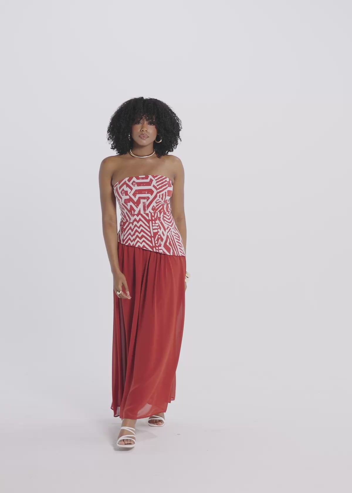 Sleek up top, flow at the bottom. The Damilola Strapless Gown in Brick Multipattern balances a structured bodice with a soft, flowing chiffon skirt. The strapless neckline keeps it clean and elevated, with removable straps when you want extra support, while the asymmetrical waistline adds subtle detail. This is the kind of gown that feels dressed up the moment you put it on.