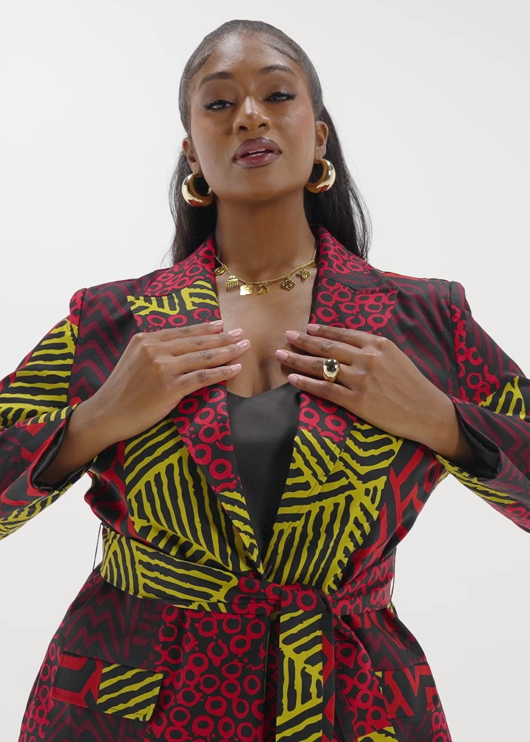 The Izara Blazer is giving bold queen energy. With the African-inspired print and oversized fit, this blazer makes a statement. For a matching moment, pair with the Yumna pants.