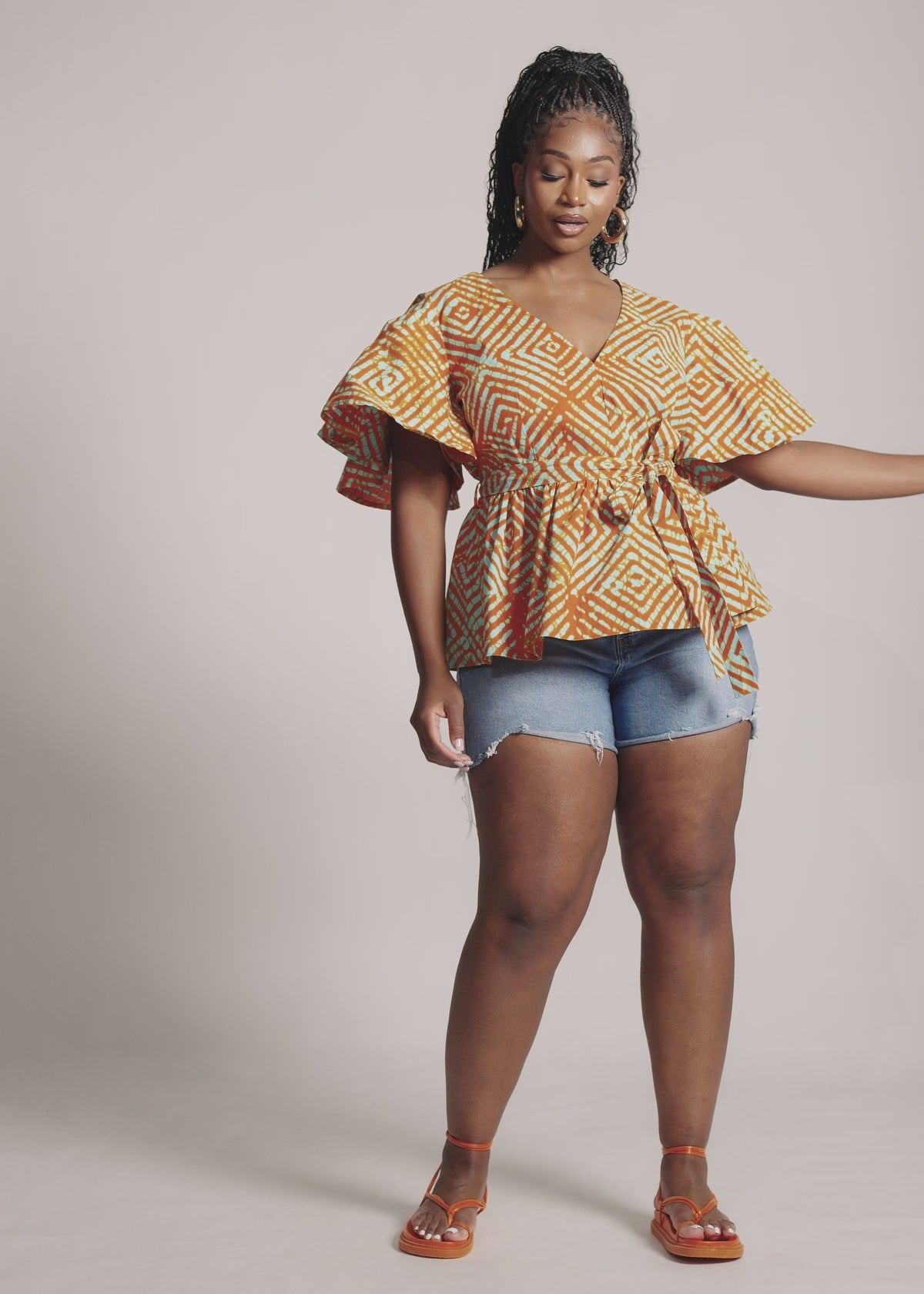 Every summer closet needs a fun blouse, and the Hamama is a great choice. She's bright, bold, and flirty, effortlessly bringing you from work days to nights out.